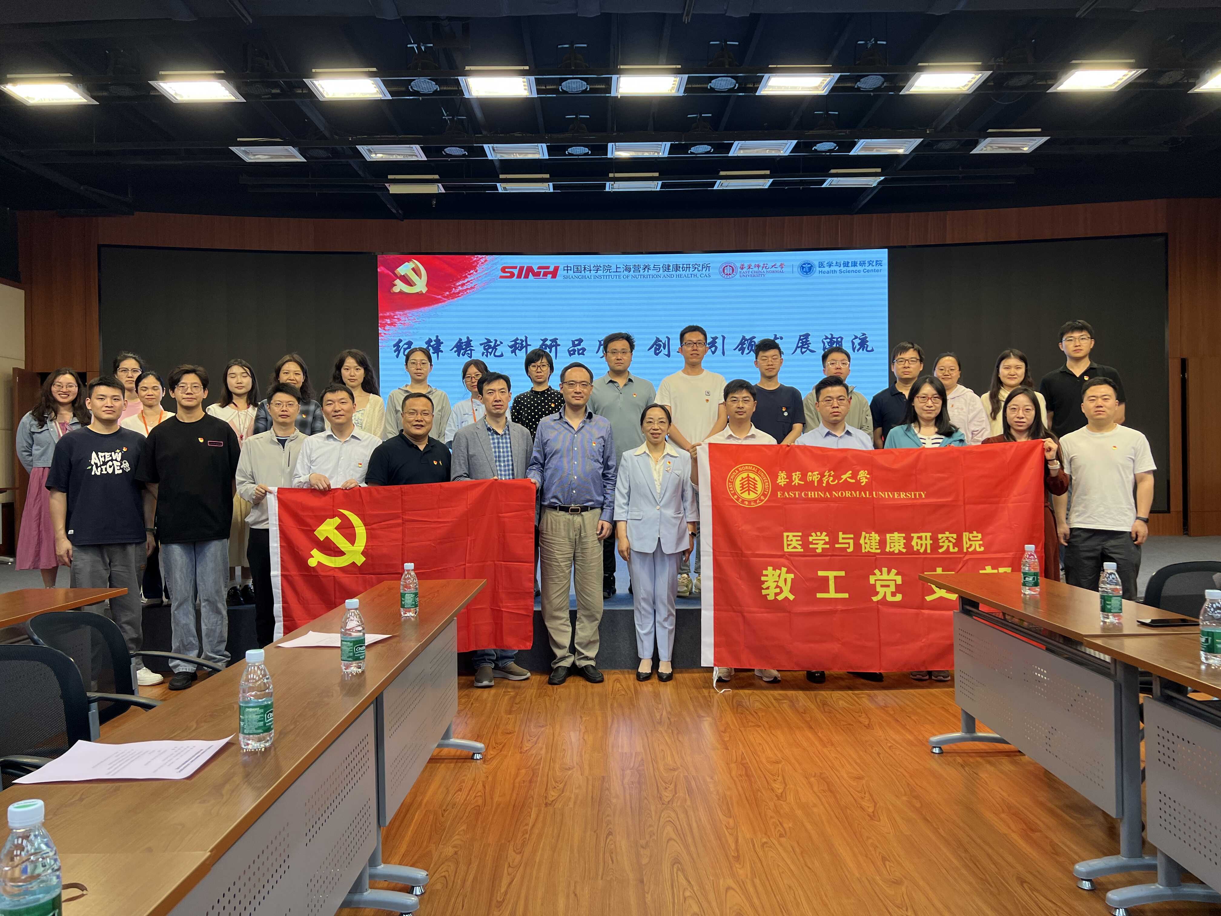 為進(jìn)一步鞏固黨紀(jì)學(xué)習(xí)教育的成效,培養(yǎng)科研誠(chéng)信的核心價(jià)值觀(guān),促進(jìn)科技創(chuàng)新的交流與合作,5月30日下午,中國(guó)科學(xué)院上海營(yíng)養(yǎng)與健康研究所營(yíng)養(yǎng)代謝與食品安全第一、第二黨支部攜手上海華東師范大學(xué)醫(yī)學(xué)與健康研究院教工黨支部,共同開(kāi)展了以“紀(jì)律鑄就科研品質(zhì),創(chuàng)新引領(lǐng)發(fā)展潮流”為主題的黨建聯(lián)學(xué)聯(lián)建活動(dòng)。華東師范大學(xué)醫(yī)學(xué)與健康研究院副院長(zhǎng)、教工黨支部書(shū)記徐敏華,研究組長(zhǎng)、支部委員胡小明研究員,藥學(xué)院副教授朱書(shū)雷,營(yíng)養(yǎng)與健康所副所長(zhǎng)汪思佳,黨委委員、研究組長(zhǎng)、黨支部書(shū)記應(yīng)浩研究員,研究組長(zhǎng)、黨支部書(shū)記周犇研究員以及雙方支部共40余名黨員骨干參與活動(dòng)。會(huì)議由周犇主持。