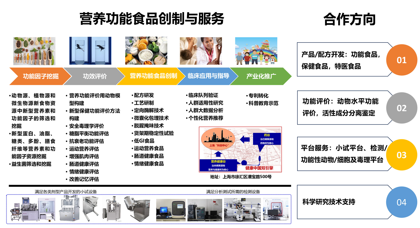 營(yíng)養(yǎng)功能食品部隸屬于中國(guó)科學(xué)院上海營(yíng)養(yǎng)與健康研究所工程實(shí)驗(yàn)室,坐落于上海市徐匯區(qū)漕寶路500號(hào),現(xiàn)有實(shí)驗(yàn)室500m2,營(yíng)養(yǎng)功能食品部形成了以食品研發(fā)、功能評(píng)價(jià)與臨床干預(yù)為核心的部門(mén)架構(gòu)。
